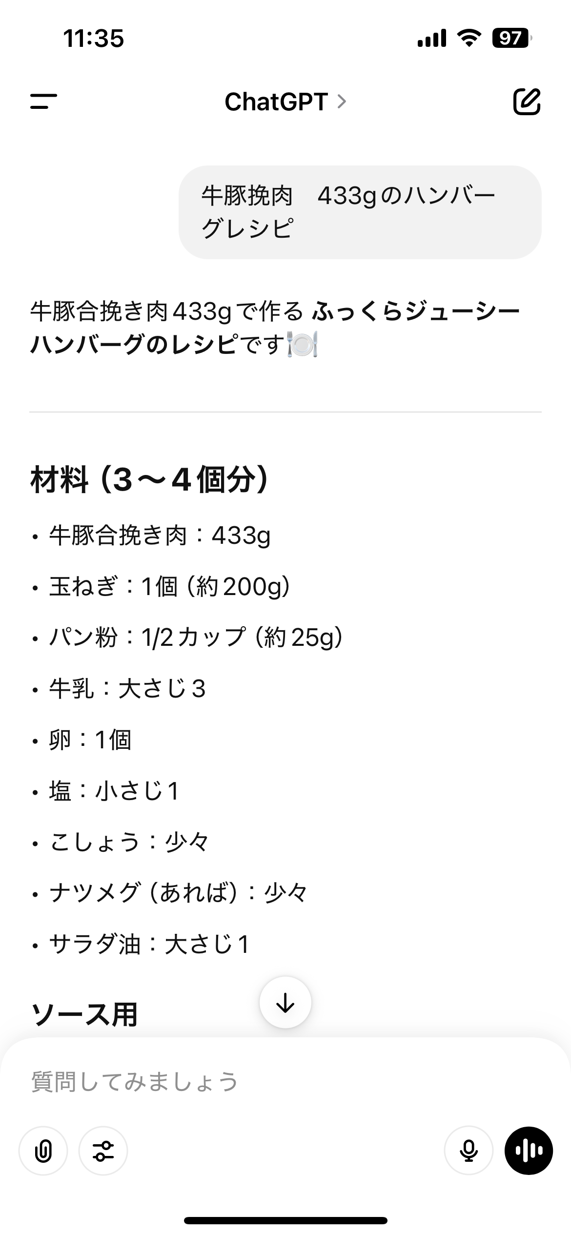 こんにちは!大広の橋田です。ハンバーグが食べたくなってひき肉を買おうにも、なかなかレシピの分量通りのお肉って用意できないですよね。そこでAIにお任せでレシピをお願いしたところ、、、、今までで一番おいしいハンバーグができました。AIってすごい、、、('Д')!!!!!!!!!